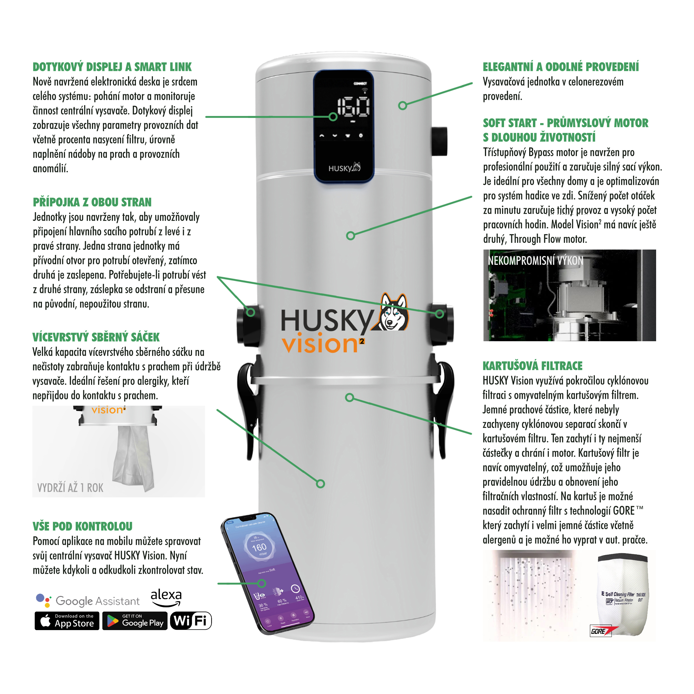 Představujeme novou generaci centrálních vysavačů Husky Vision2 – systémy navržené pro ty nejnáročnější. Tyto modely nejsou jen vysavače, jsou to inteligentní srdce vašeho čistého domova, které spojuje elegantní celonerezové provedení s revolučními technologiemi.