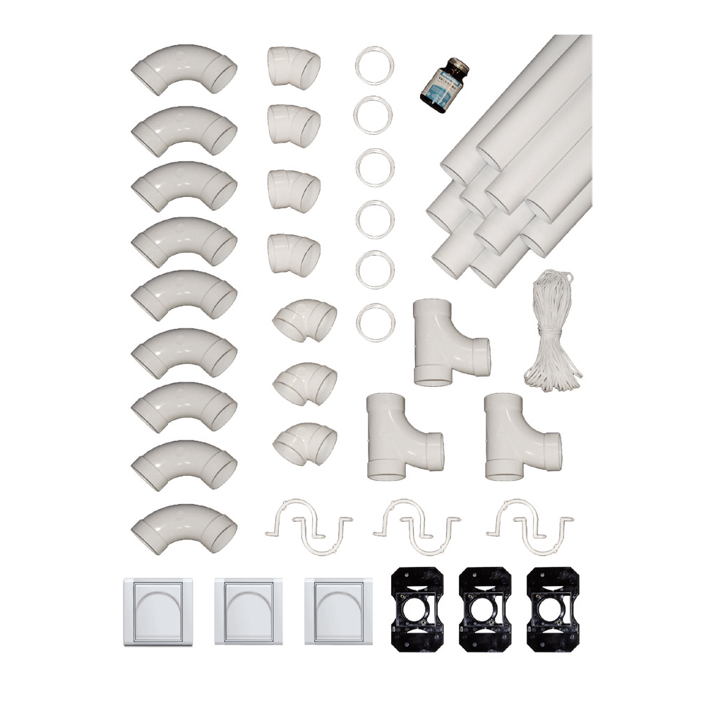 Základní sada pro instalaci rozvodu centrálního vysavače se třemi vysavačovými kompletními zásuvkami od firmy ABB. Zásuvka je včetně montážní desky a rámečku v bílé barvě. Sada obsahuje vše potřebné, ale každá instalace vyžaduje individuální počet instalačních prvků, které si můžete doplnit podle Vaší potřeby v našem eshopu. Sada by Vás měla inspirovat, jaké všechny prvky jsou běžně potřebné. Součástí je i návod na instalaci.