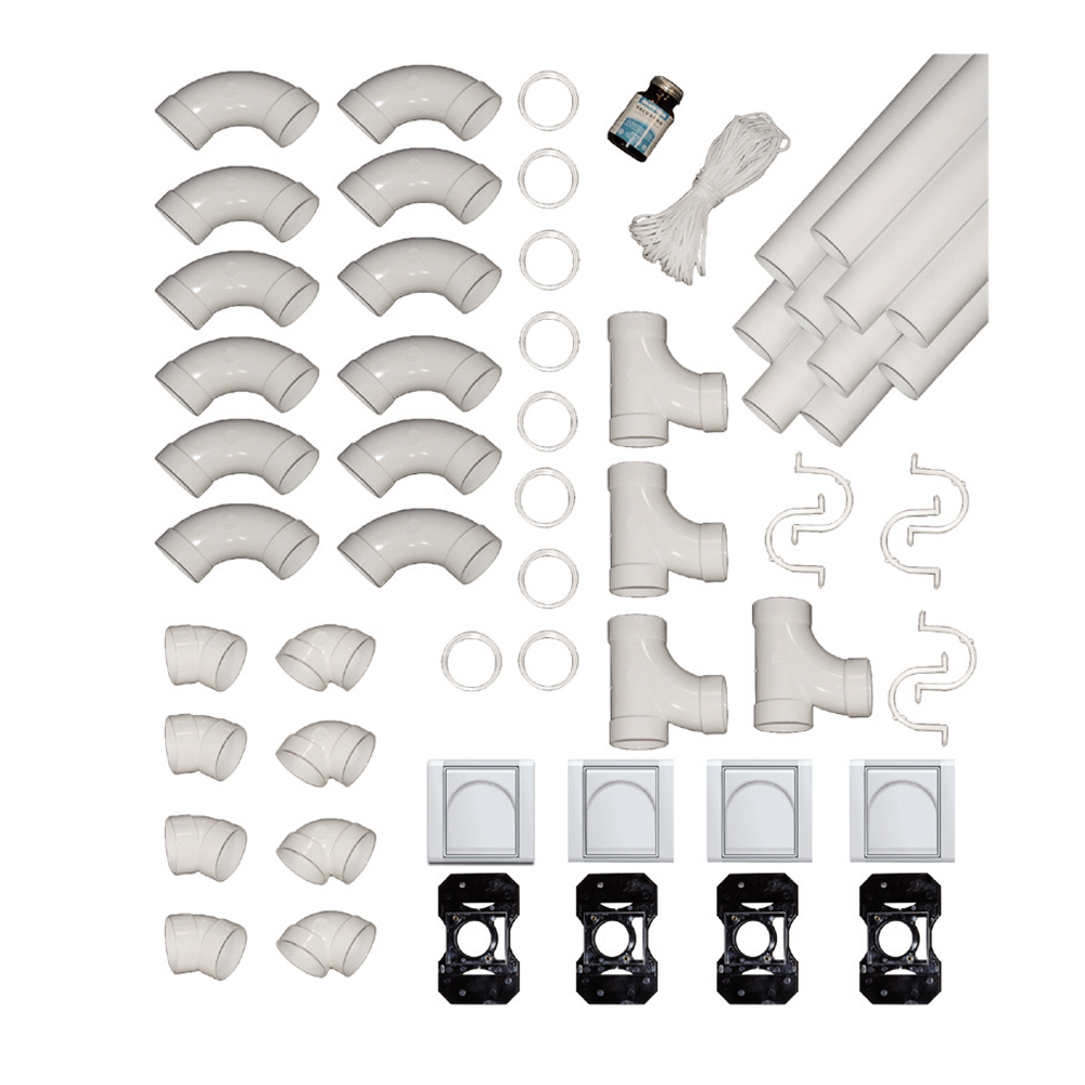 Základní sada pro instalaci rozvodu centrálního vysavače se čtyřmi vysavačovými kompletními zásuvkami od firmy ABB. Zásuvka je včetně montážní desky a rámečku v bílé barvě. Sada obsahuje vše potřebné, ale každá instalace vyžaduje individuální počet instalačních prvků, které si můžete doplnit podle Vaší potřeby v našem eshopu. Sada by Vás měla inspirovat, jaké všechny prvky jsou běžně potřebné. Součástí je i návod na instalaci.